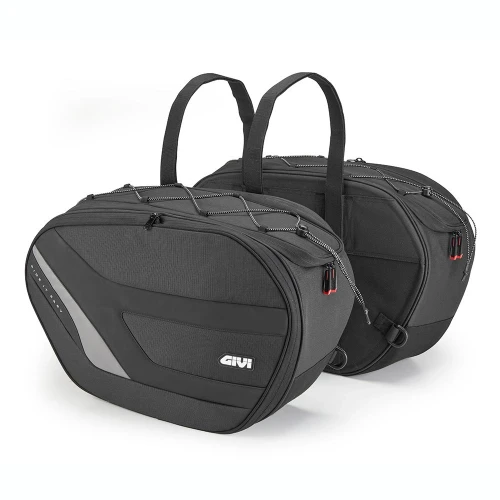 Store utvidbare softbags som festes med sterke borrelås-stropperPar med myke sidevesker som kan utvides til å romme hele 35 + 35 liter, utviklet for å gi maksimal lastekapasitet, praktisk i bruk og sikkerhet på turer med motorsykkelen.