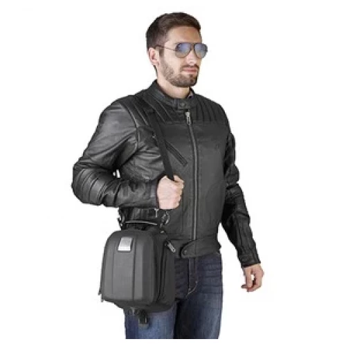 Leveres med regntrekk og skulderstropp.
