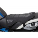 Comfortable seat pad with active heating elements that are powered by a commercially available additional power bank via USB and can provide cosy warmth to the rear for hours depending on capacity.