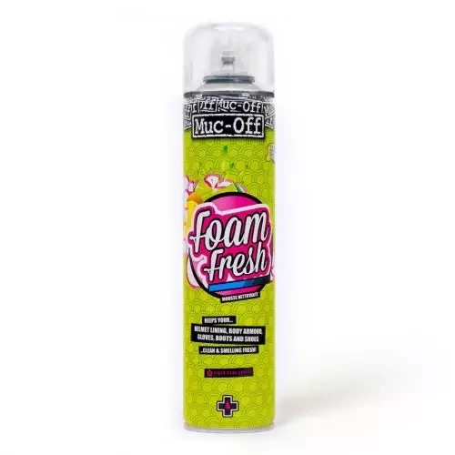 Foam Fresh fra Muc-Off for rengjøring av hjelmer, sko, støvler, hansker, beskyttelsesutstyr som ryggplater og annet som brukes i aktivitet,sport, racing eller på jobb.