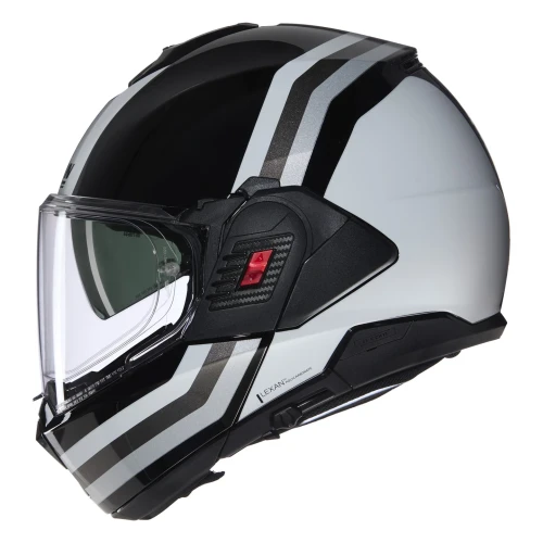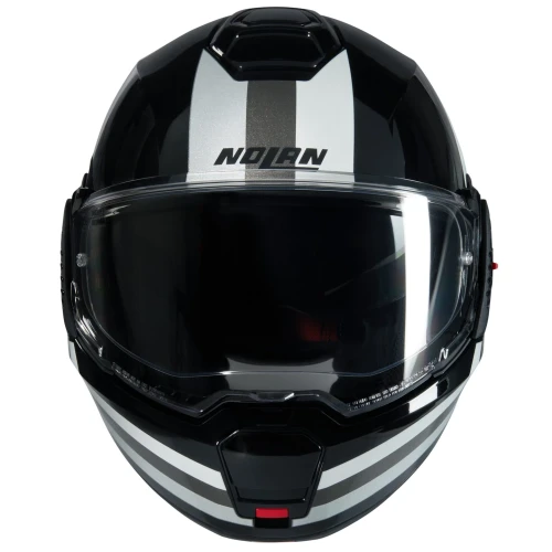 Nolan erobrer verden av modulhjelmer med den eksklusive flip-back N120-1, en motorsykkel hjelm som representerer det beste innen teknologi, innovasjon og design. Skapt for å møte kravene fra et marked som stadig mer orienterer seg mot crossover motorsykler. Med denne åpnings MC hjelmen, som har dobbel helhjelm (P) og Jet (J) godkjenning og hakebeskyttelse/bauport som kan vippes bak 180°, bryter Nolan formen med et innovativt flip-back teknologikonsept. Nolan N120-1 har mange tekniske kvaliteter som førere setter høyt; lavt støynivå, høy kvalitet i interiør og eksteriør, stort solvisir, Ultra-wide hovedvisir, pinlock orginalmontert, super passform og klargjort/forberedt for godkjent Nolan N-Com intercom. Solvisiret har enkel betjening langs venstre nedre kant, skyv det frem når du trenger det, trykk på en knapp, så spretter solvisiret raskt opp igjen.