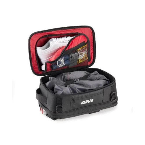En praktisk stropp på bakpanelet gjør at ryggsekken enkelt kan festes til en trillekoffert, noe som gjør den praktisk for bruk på flyreiser. Takket være de avtakbare skulderstroppene, kan ryggsekken også festes til salen på motorsykkelen, eller som ekstra last på toppbokser, ved hjelp av de medfølgende stroppene.