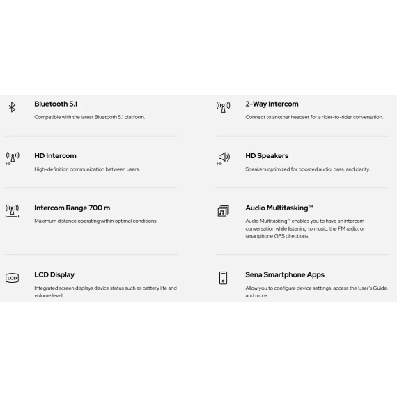 Sena 5S bygger videre på den legendariske SMH5 og leverer neste generasjon funksjonsrike og prisgunstige intercom-løsninger. Med brukervennlighet i fokus tilbyr 5S HD-høyttalere for hjelmen, HD-to-veis intercom, integrert LCD-skjerm, og en rekke andre praktiske funksjoner – alt til en uslåelig verdi. Bluetooth® 5.1 holder deg tilkoblet med din passasjer eller medrytter. Nyt HD-lydkvalitet, musikkdeling og innebygde lydprofiler for lydjustering. Med tillegg som håndfrie telefonsamtaler og GPS-anvisninger er Sena 5S din perfekte følgesvenn på veien. Sena 5S gir deg frihet, komfort og pålitelig kommunikasjon til en rimelig pris. Gjør din neste motorsykkeltur enda bedre med den perfekte kombinasjonen av moderne funksjoner og brukervennlighet. Norsk brukermanual.