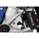 The ABS sensor for the front wheel sits very exposed and unprotected between the radial brake caliper and axle of the front wheel. It is a sensitive component that together with the ABS rim and ABS controller prevents the front wheel brake from being blocked and the rider from losing control of the motorcycle. It is an important safety component that must always be working and which must always be protected from mechanical damage e.g. caused by stones, branches or other foreign bodies.