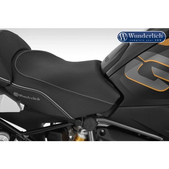 Også typisk Wunderlich: Den innebygde konkave profilen for å avlaste det trykkfølsomme halebenet er et annet enestående varemerke! De tilbyr perfekt hold og aktiv, pålitelig kontroll under akselerert kjøring, også spesielt ved bremsing: hvem har ikke opplevd det, når passasjeren din plutselig glir fremover ved bremsing og du umiddelbart må støtte deg samtidig som du må styre inn det som kan være en hårete situasjon? Med Wunderlichs helt egen støttekontur er disse skumle øyeblikkene under bremsing nå en saga blott.
