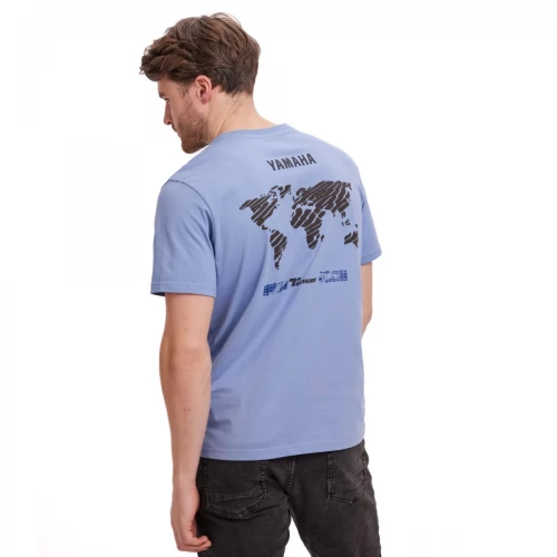 Yamaha 25 Adv Peculiar Ténéré T-skjorte Blå er den perfekte Yamaha Adventure t-skjorten for deg som elsker motorsykkel, frihet og nye horisonter. Dette er mer enn bare en t-skjorte – den er et symbol på eventyrlyst og Ténéré-ånden. Med Ténéré-logo på brystet og et stort, detaljert verdenskart trykket på ryggen, viser du tydelig din lidenskap for oppdagelse – enten du er på tur, i garasjen eller blant likesinnede på treff.